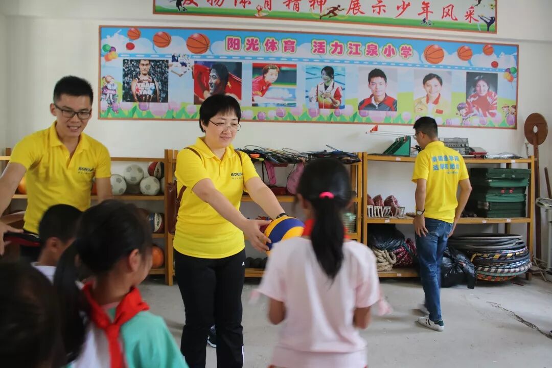 Boda Public welfare people previously found that the school was relatively short of equipment suitable for primary school physical education, so it purchased a wide variety of sports equipment for Xuantian Primary school.
